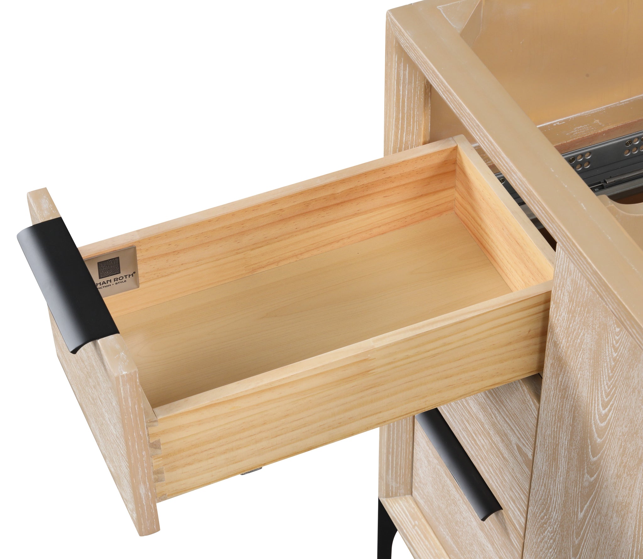 Oxford 48 Inch Bathroom Vanity in Whitewashed Ash with Matte Black Hardware.
